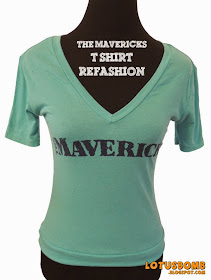 Here's another quick redo I did with this Mavericks shirt. My original plan was to turn this around so the V was on the back but I liked how it looked better in the front as it is supposed to be. Just a simple refashion where I took in the sides and added in the banded bottom. I kept the sleeves on and took it in a little to give the shirt a more feminine feel .